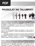 talumpati. Ang talumpati ay isang buod ng kaisipan o opinyon ng isang tao na pinaparating sa