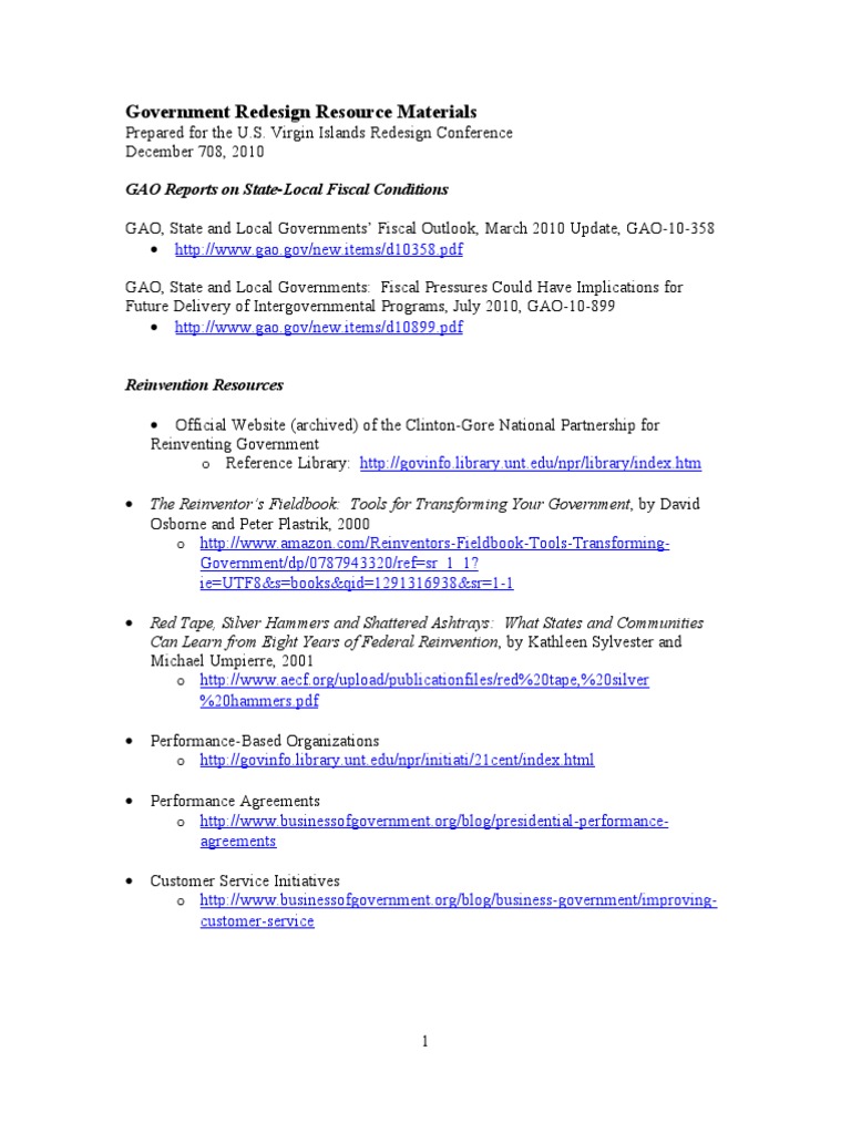 Government Redesign Resource Materials