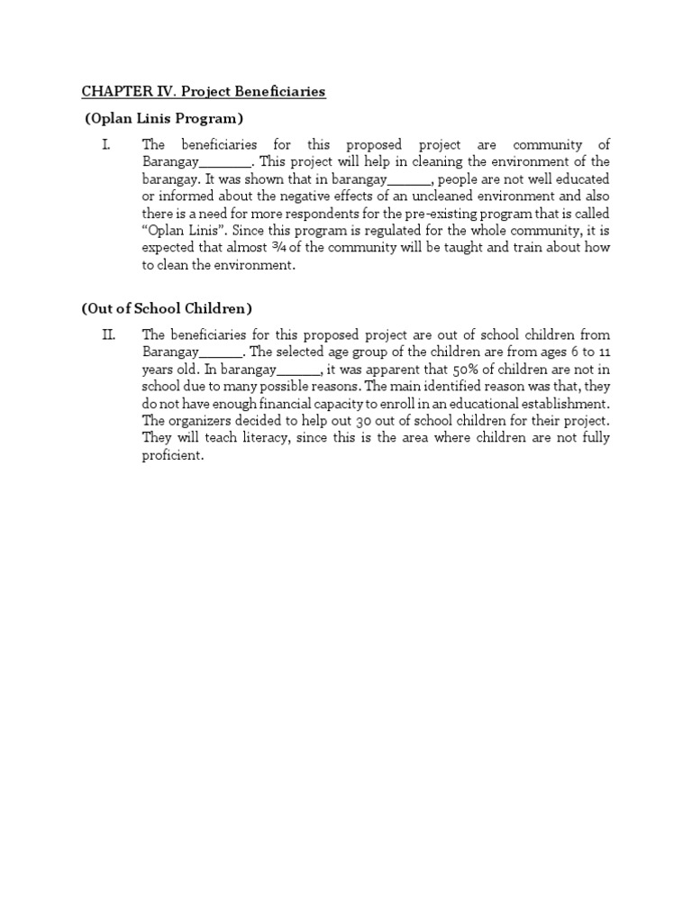 II. The beneficiaries for this proposed project are out of school children from
