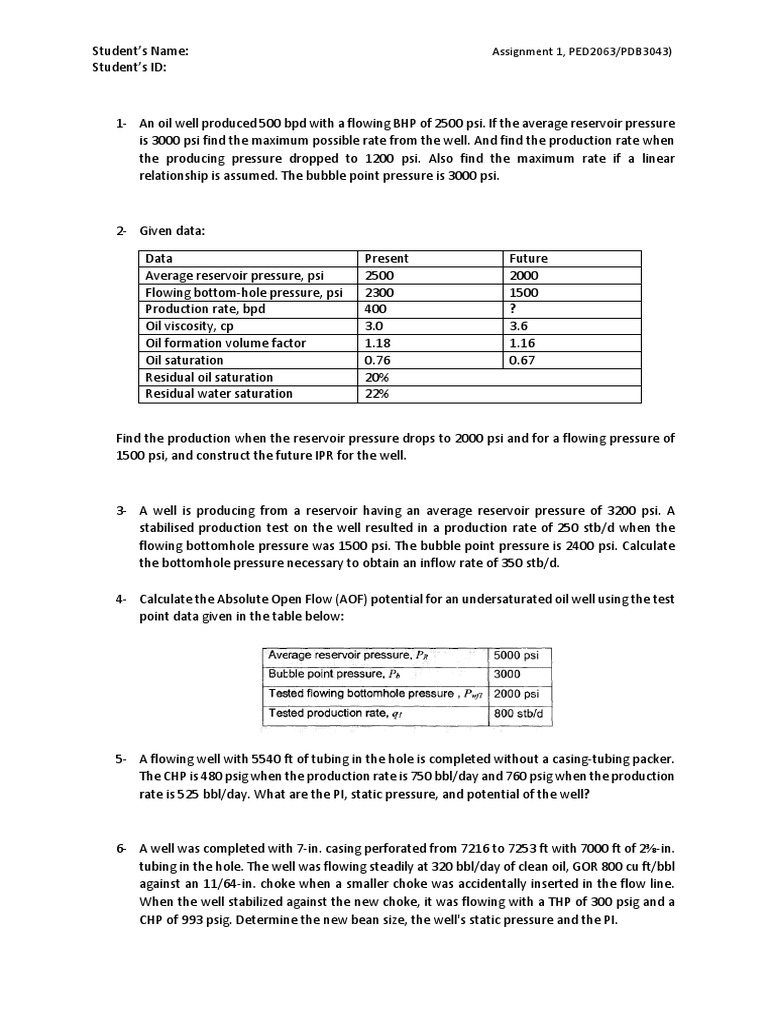 1- An oil well produced 500 bpd with a flowing BHP of 2500 psi. If the average reservoir pressure