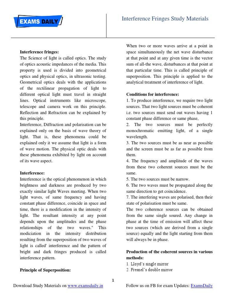 Interference Fringes Study Materials