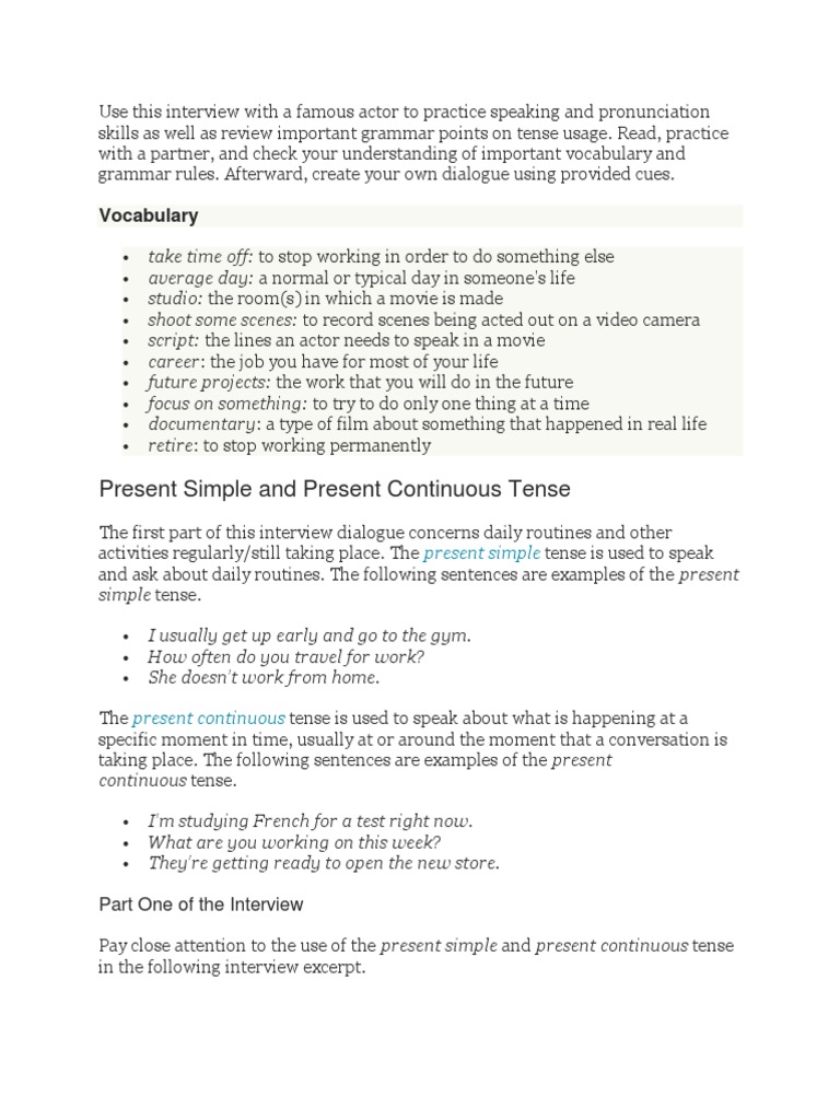 Pay close attention to the use of the present simple and present continuous tense
