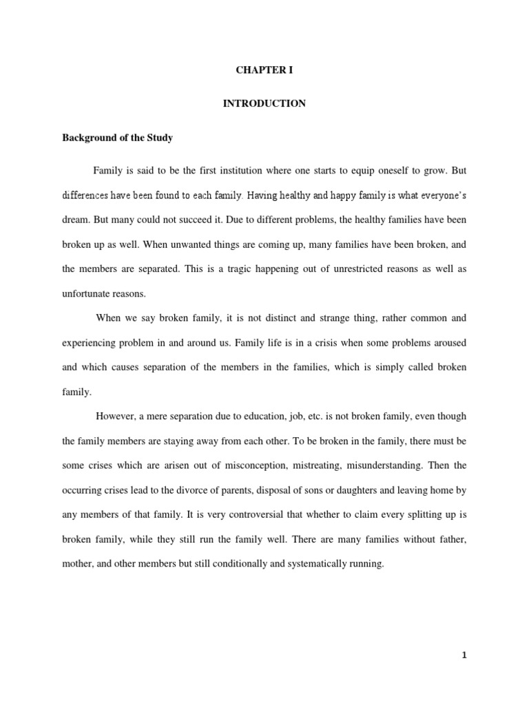 The research entitled, “Better or Worse: Broken Family”. This research would determine