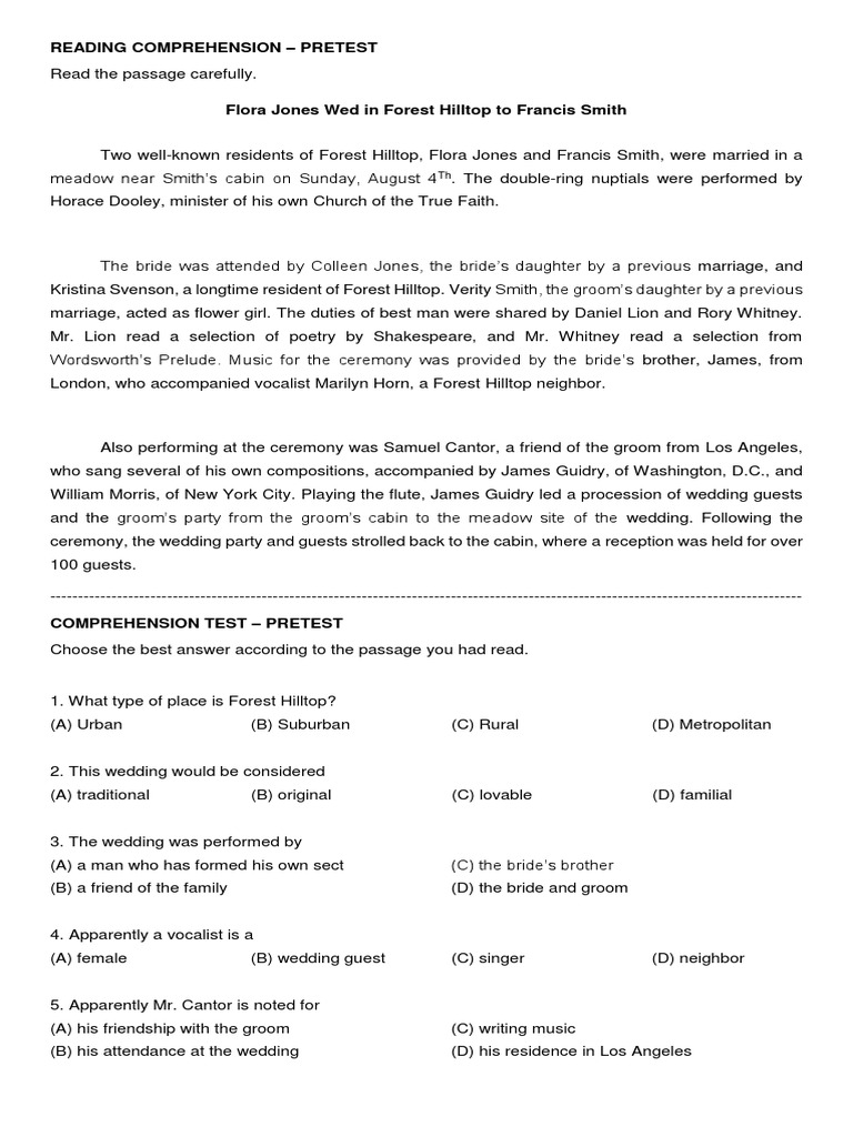 COMPREHENSION TEST – PRETEST