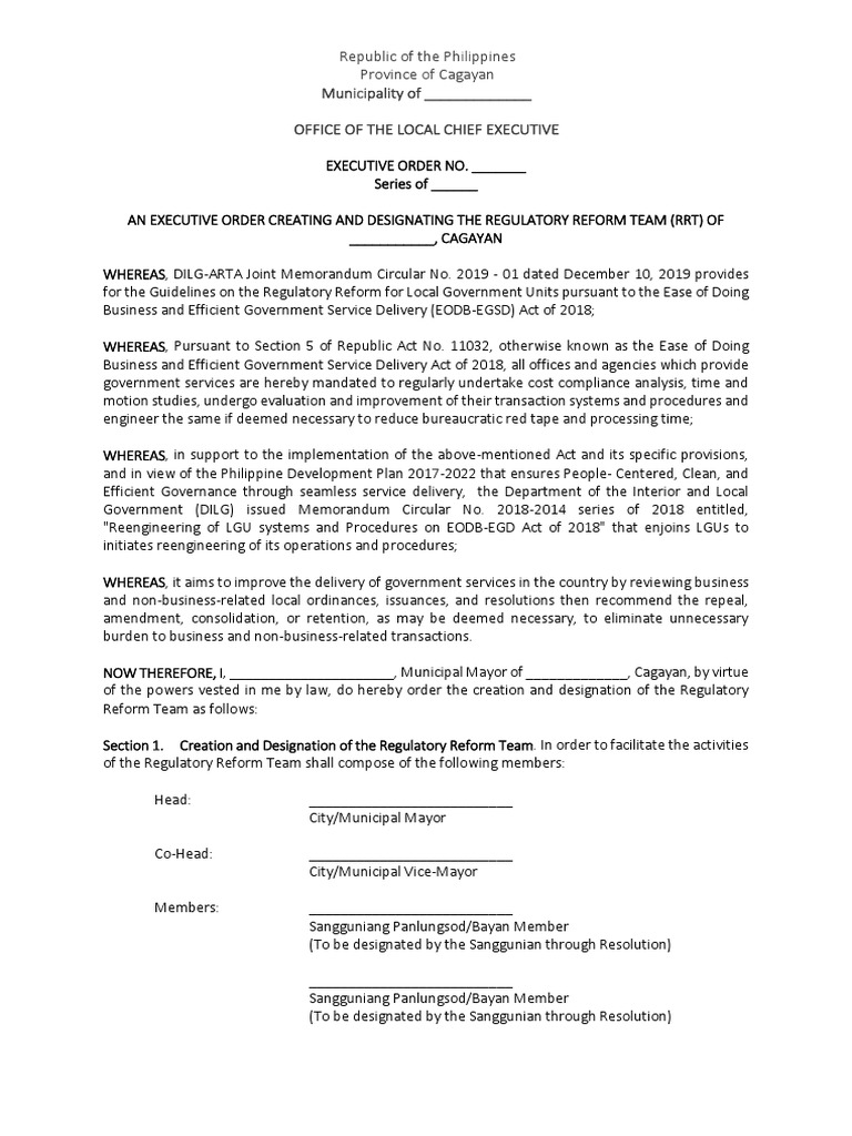 NOW THEREFORE, I, _____________________, Municipal Mayor of _____________, Cagayan, by virtue