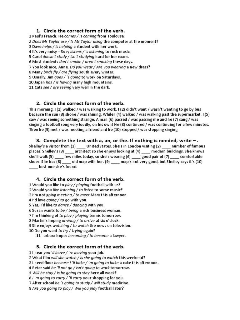 1. Circle the correct form of the verb.