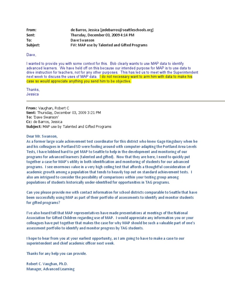 Subject: FW: MAP use by Talented and Gifted Programs