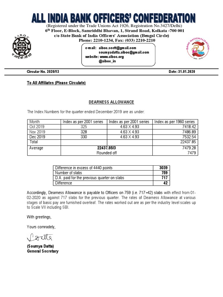 Accordingly, Dearness Allowance is payable to Officers on 759 (i.e. 717+42) slabs with effect from 01-