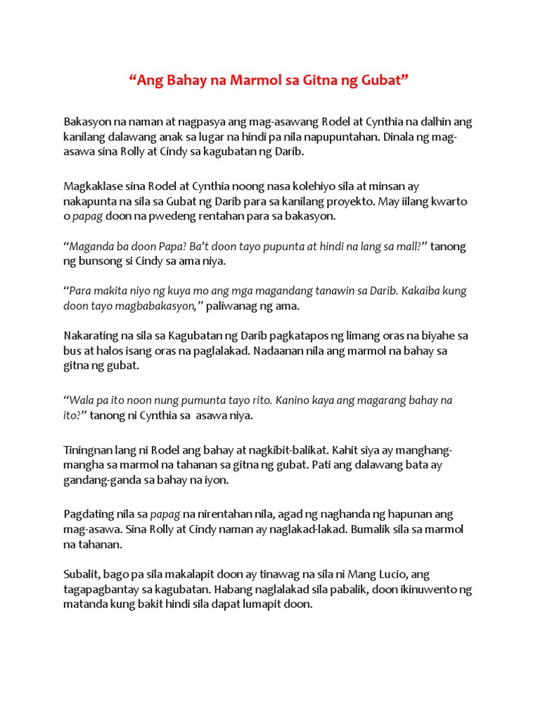 magulang. Nanood rin sila ng mga bituin bago matulog. Kinabukasan, maagang
