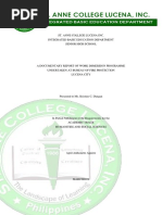 and laboratories in which their prior training is relevant. Work Immersion is a key feature