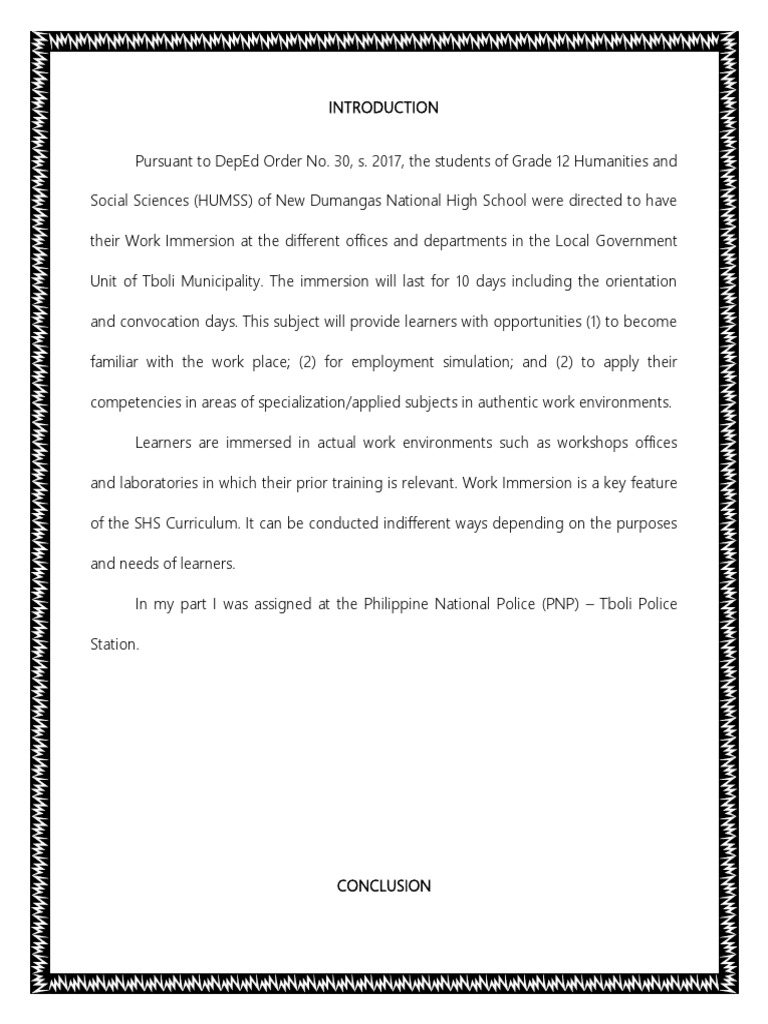Work immersion enables learners to become familiar with the workplace, simulate