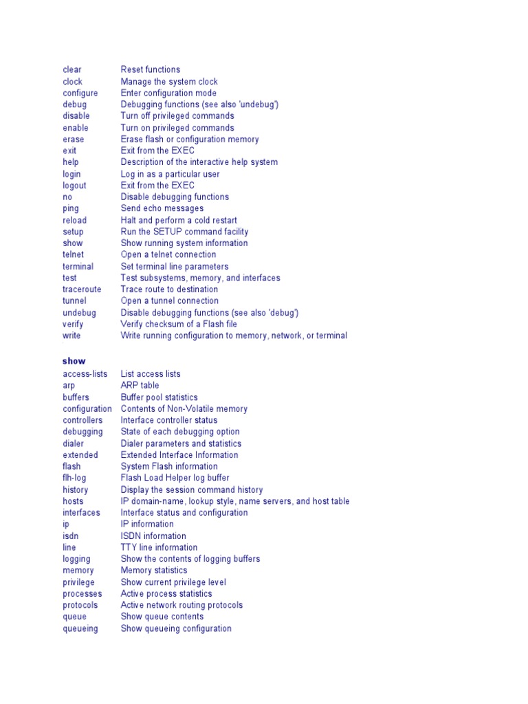 Here are some show commands of Cisco switches: