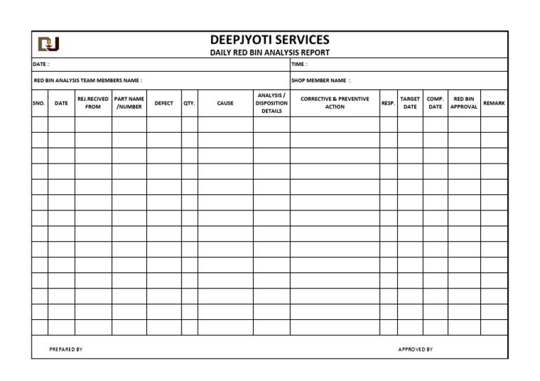 REJ.RECIVED PART NAME CORRECTIVE & PREVENTIVE TARGET COMP. RED BIN