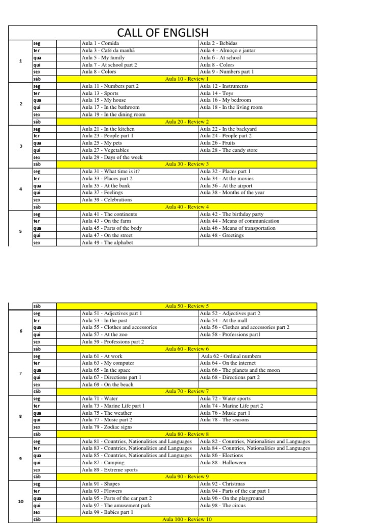 qua Aula 45 - Parts of the body Aula 46 - Means of transportation