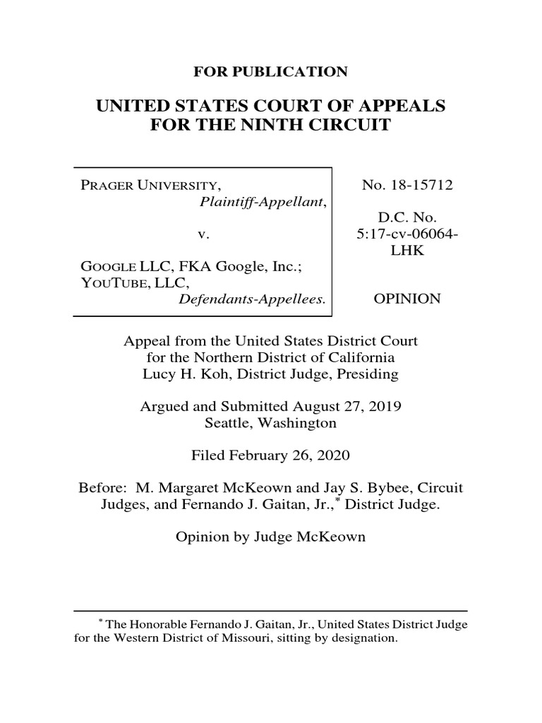 of [the plaintiff’s] First Amendment rights” by YouTube and other