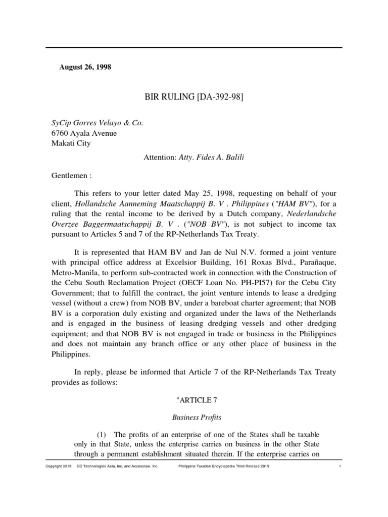 pursuant to Articles 5 and 7 of the RP-Netherlands Tax Treaty. cdt