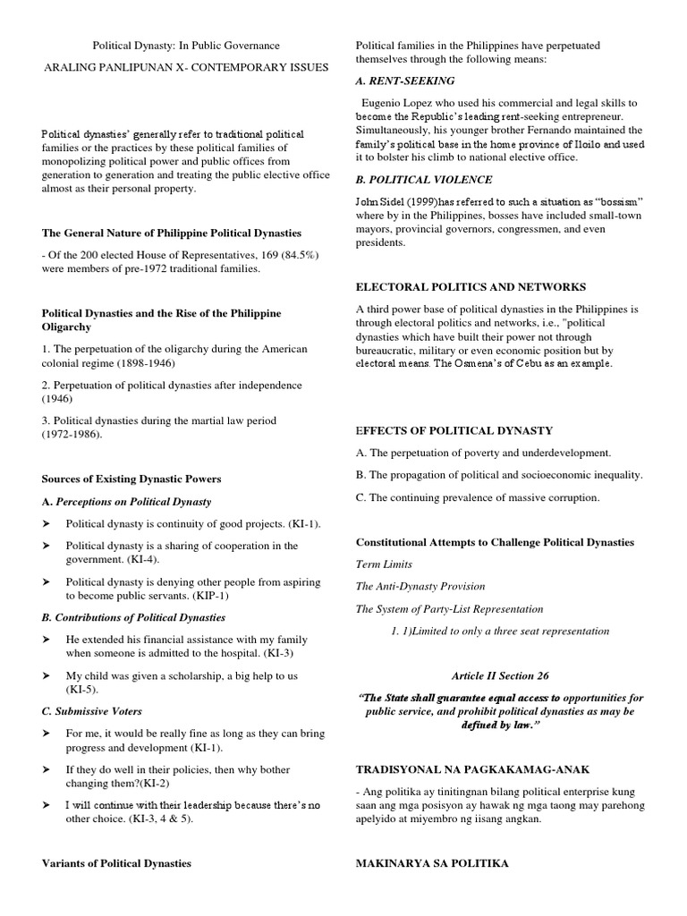 Political Dynasty: In Public Governance Political families in the Philippines have perpetuated