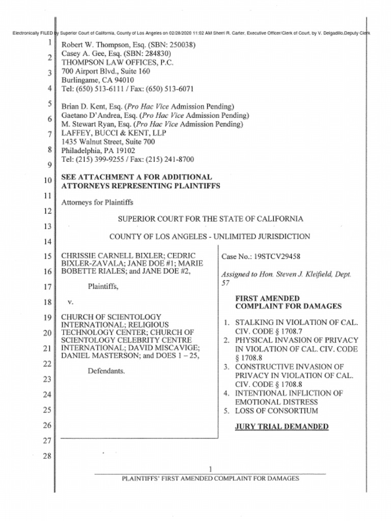 Bixler Et Al. v. Scientology: First Amended Complaint