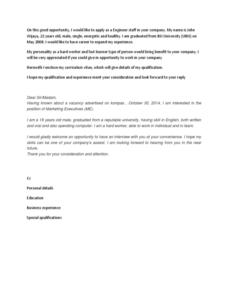 Having known about a vacancy advertised on kompas , October 30, 2014, I am interested in the
