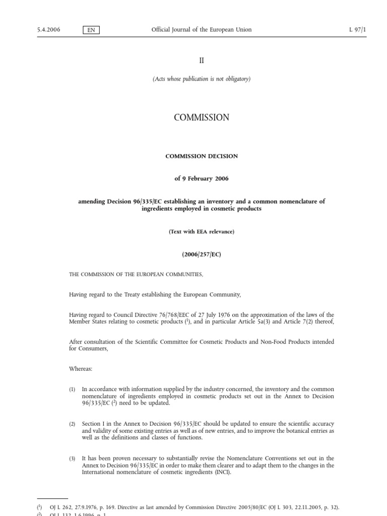 noted that Article 5a of the cosmetic products Directive refers to CTFA, which has been replaced by INCI as the