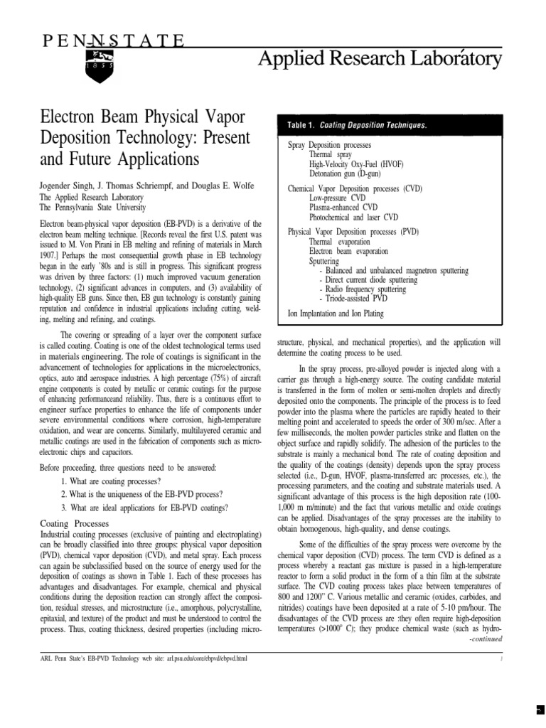 ARL Penn State’s EB-PVD Technology web site: [Link]/core/ebpvd/[Link] 1