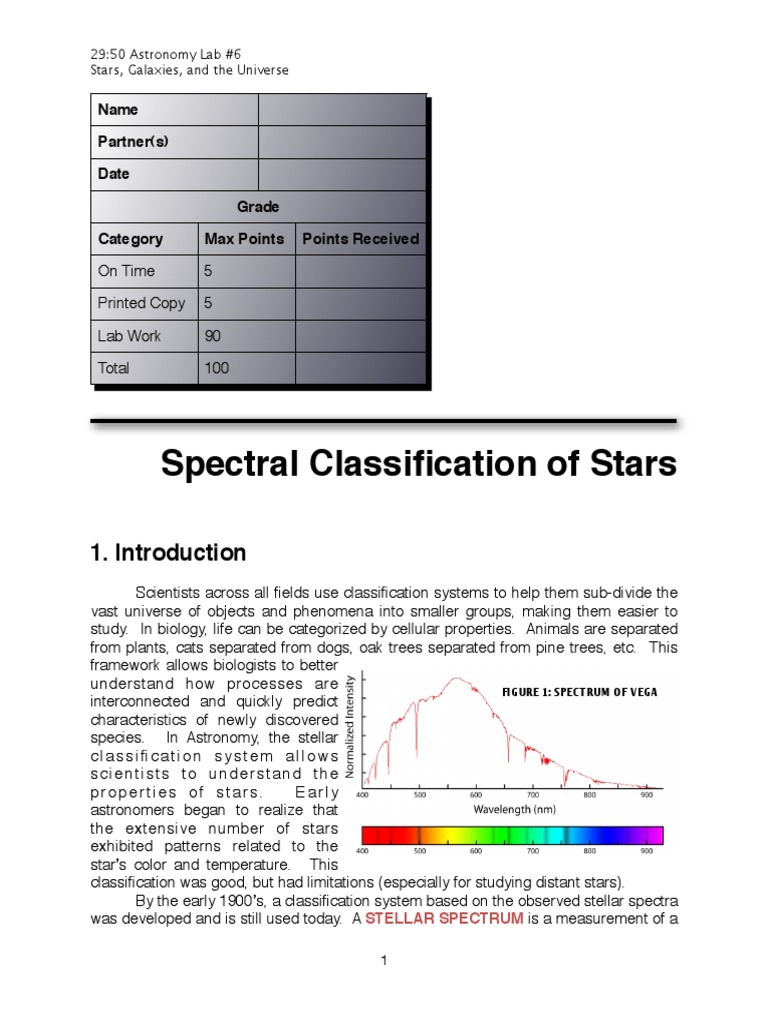 • Example: Figure 1 shows the spectrum of Vega. Vega has a stellar classification
