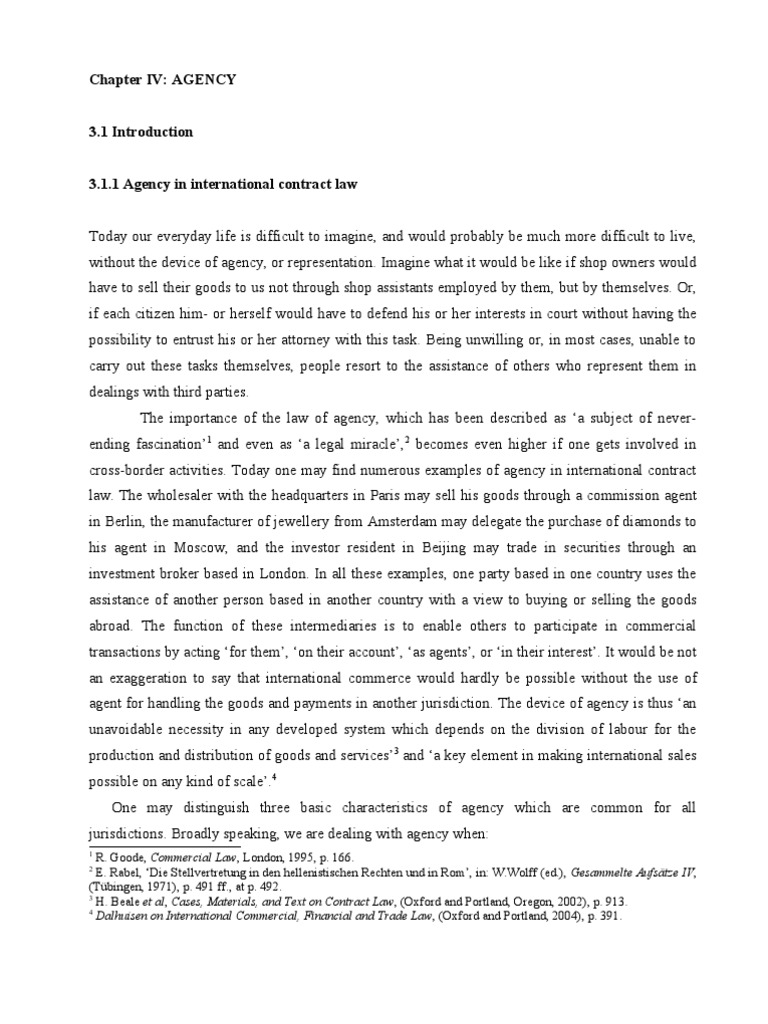 cross-border activities. Today one may find numerous examples of agency in international contract