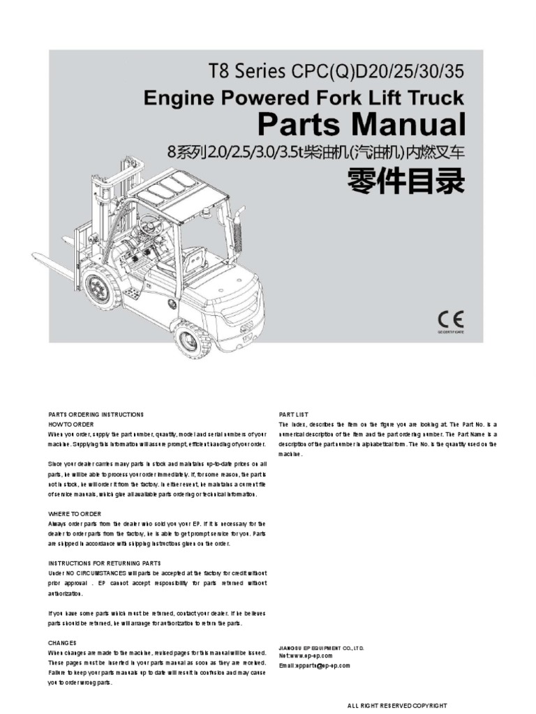 您要总是从销售给您 EP 叉车的经销商那里订购零件。如果经销商有必要从公司订
