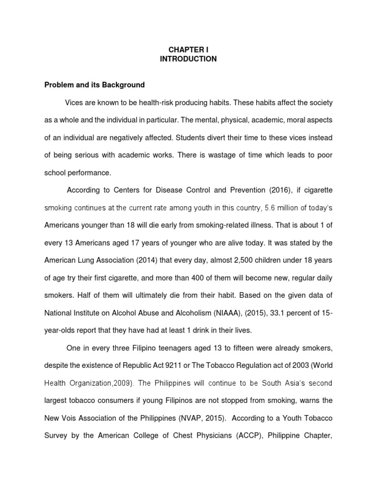 research entitled “Engagement to the Health-Risk Vices and School Performance of the