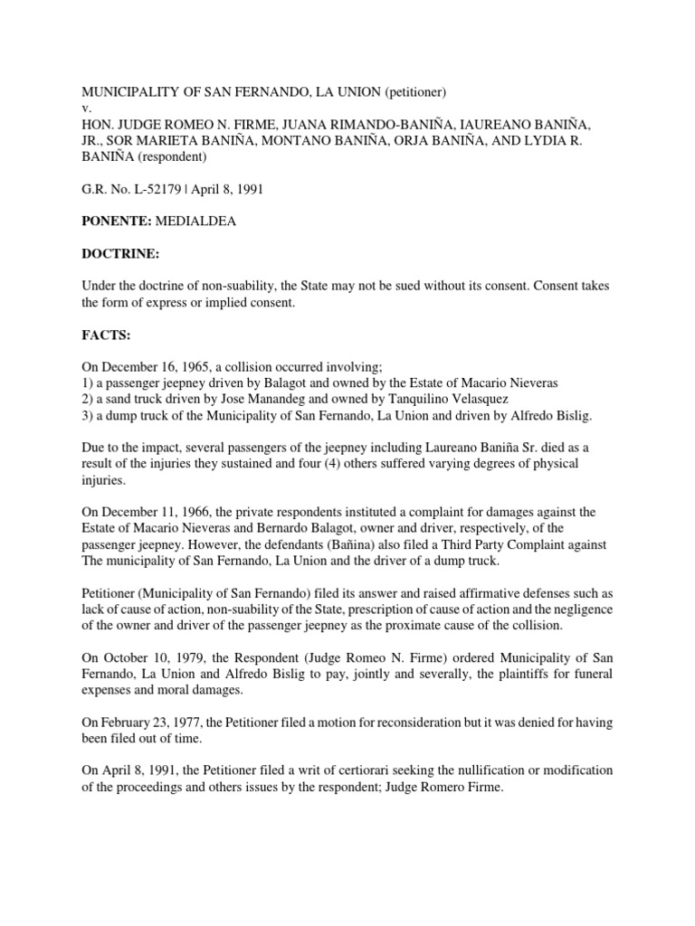 On October 10, 1979, the Respondent (Judge Romeo N. Firme) ordered Municipality of San