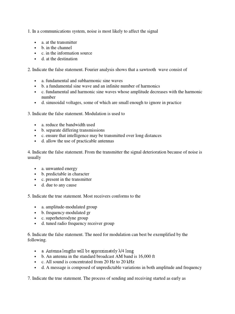 4. Indicate the false statement. From the transmitter the signal deterioration because of noise is