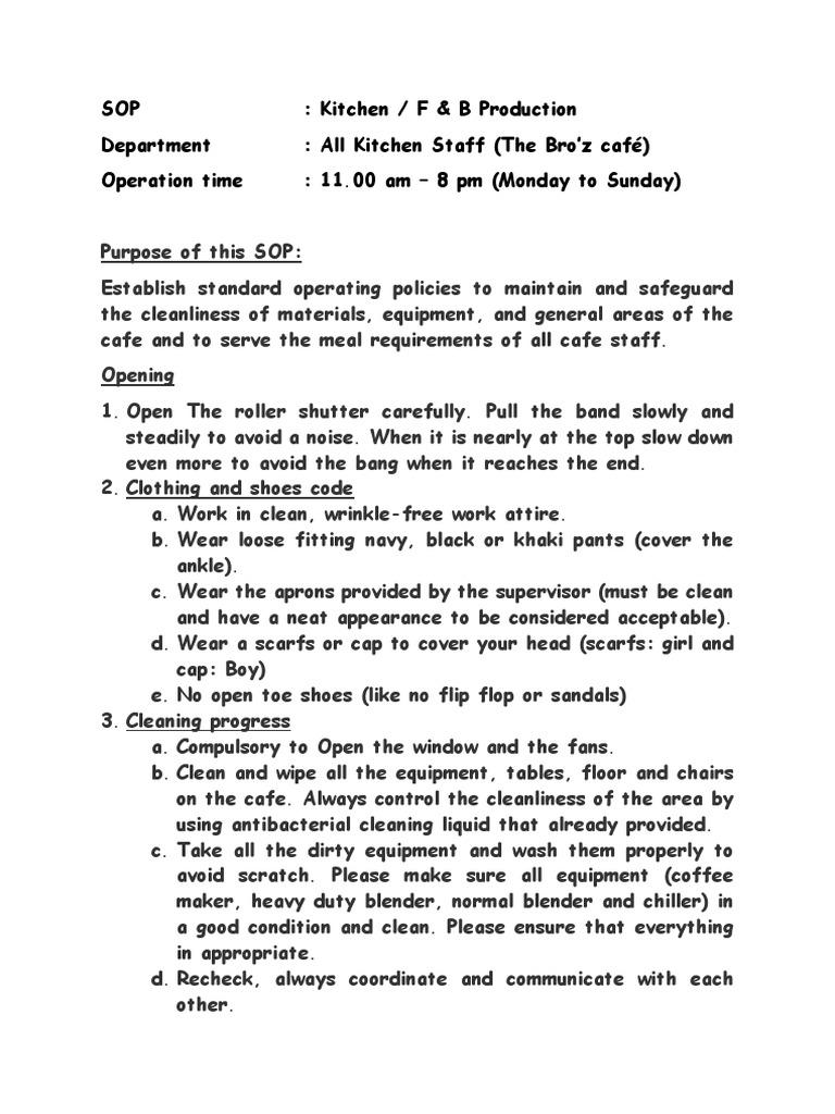 b. Clean and wipe all the equipment, tables, floor and chairs