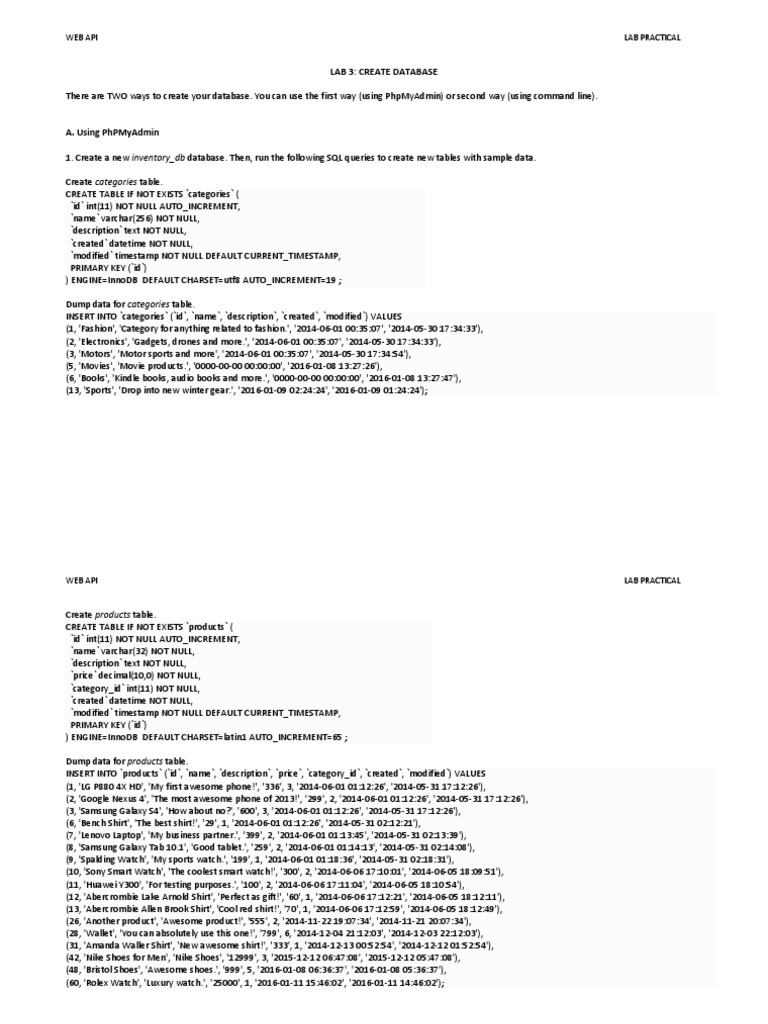 1. Create a new inventory_db database. Then, run the following SQL queries to create new tables with sample data.