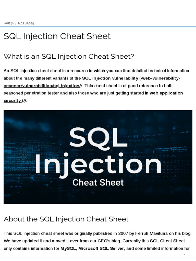 scanner/vulnerabilities/sql-injection/). This cheat sheet is of good reference to both