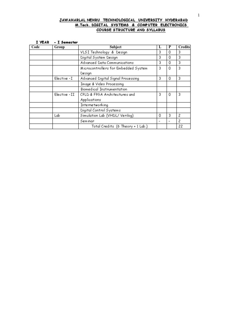 M.Tech. DIGITAL SYSTEMS & COMPUTER ELECTRONICS