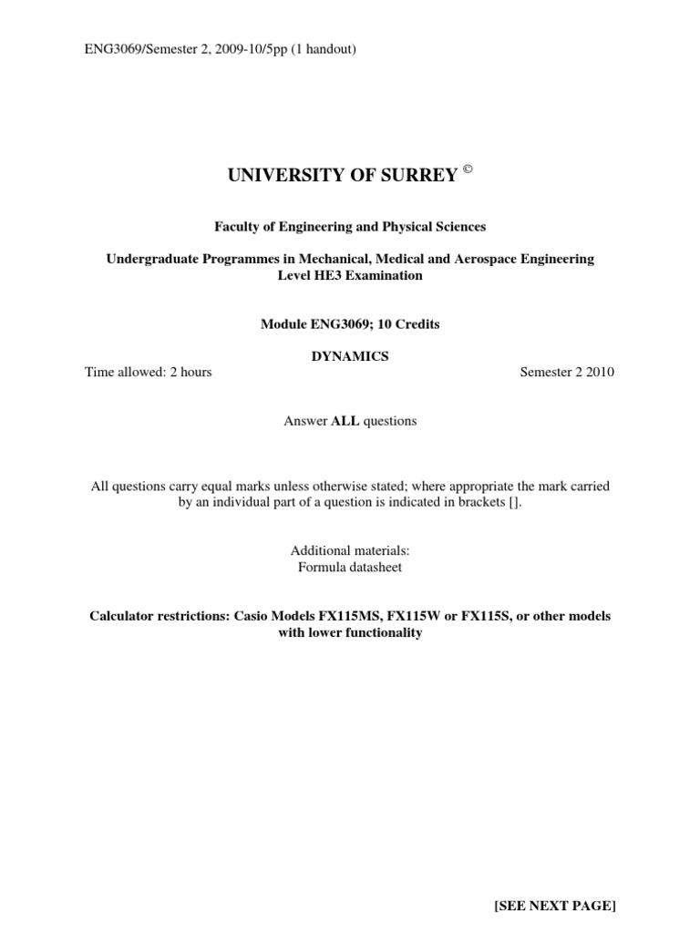 Calculator restrictions: Casio Models FX115MS, FX115W or FX115S, or other models