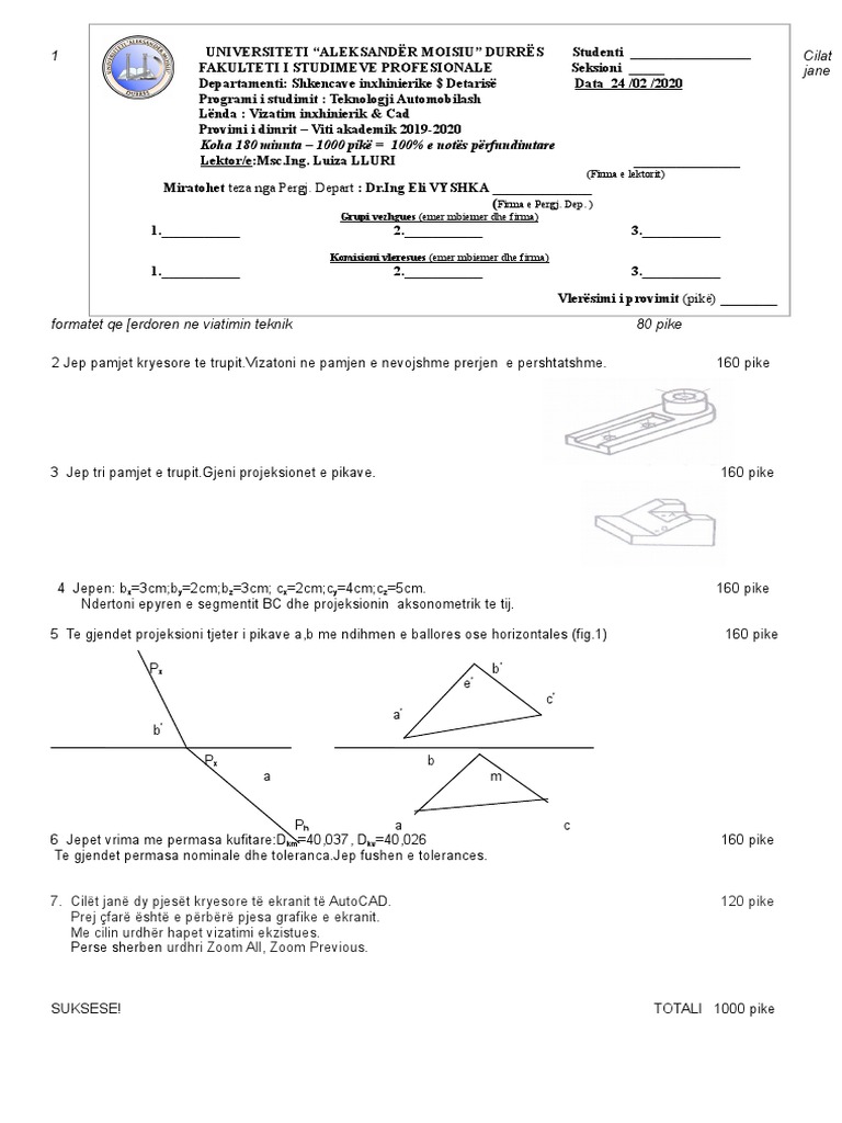 2 Jep pamjet kryesore te trupit.Vizatoni ne pamjen e nevojshme prerjen e pershtatshme. 160 pike