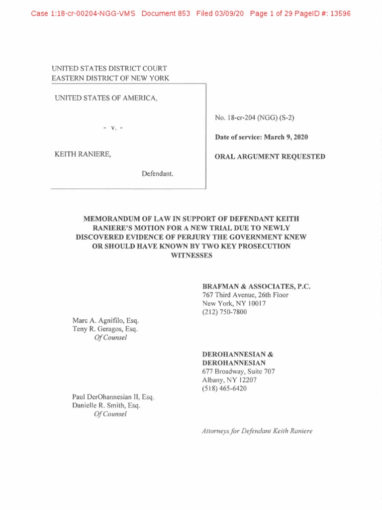 KEITH RANIERE'S MOTION