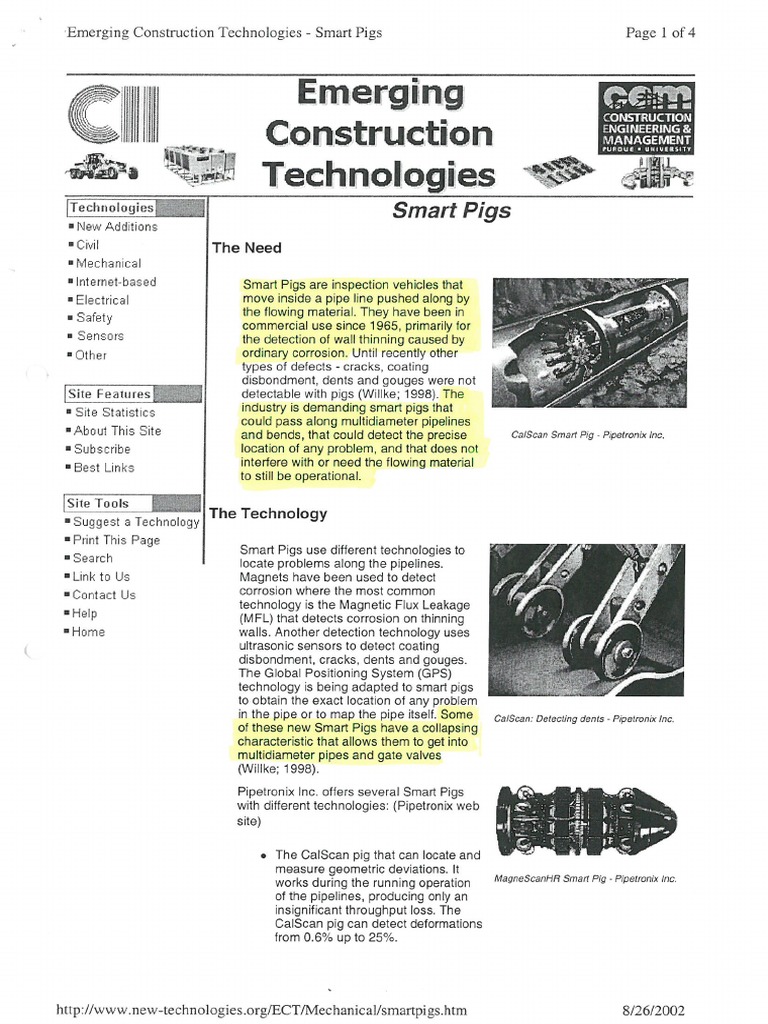 Emerging Construction Technologies - Smart Pigs Page | of 4
