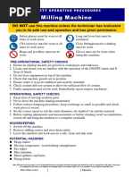 Safety glasses must be worn at Long and loose hair must be Gloves must not be worn