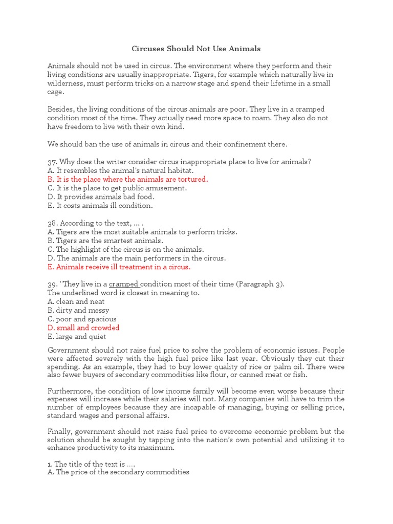 37. Why does the writer consider circus inappropriate place to live for animals?