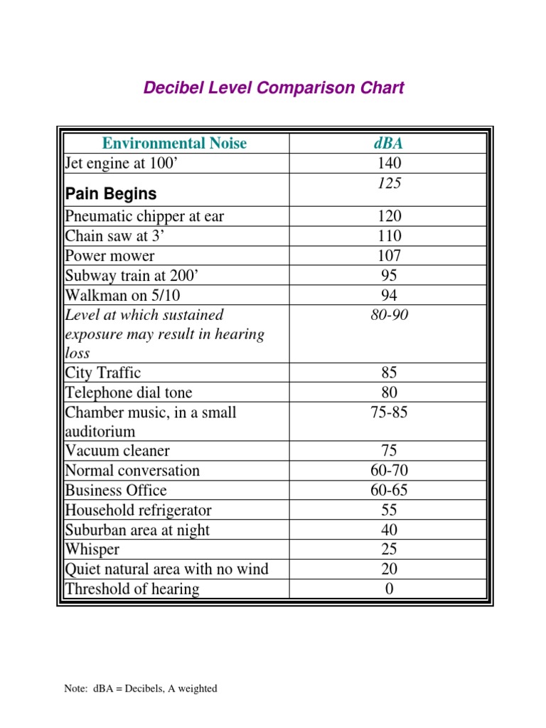 Decibel Level Comparison Chart