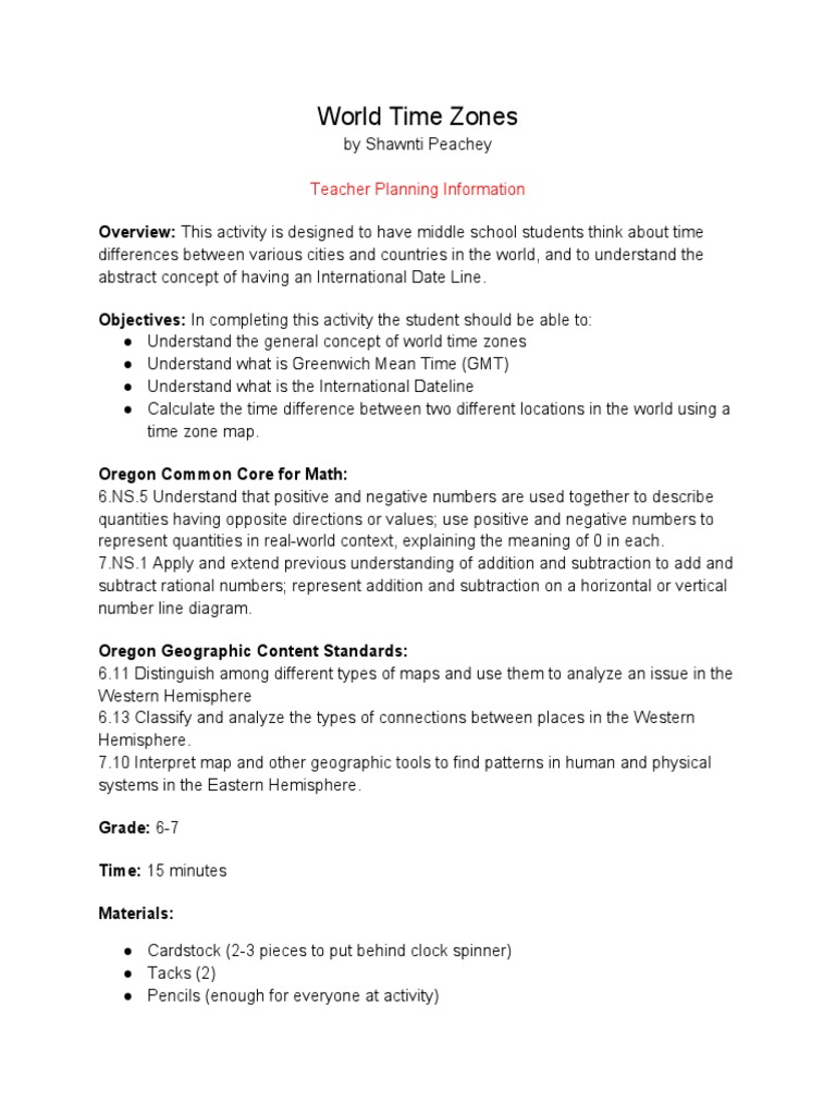 ● Understand the general concept of world time zones
