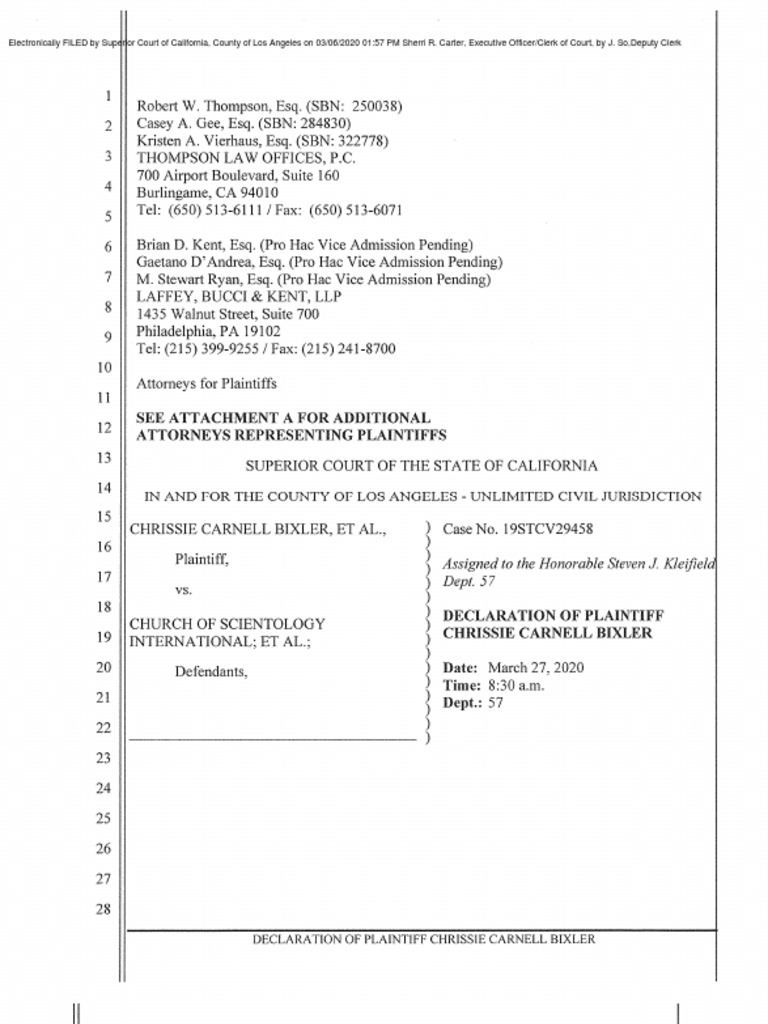 Bixler v. Scientology: Declaration by Chrissie Carnell Bixler