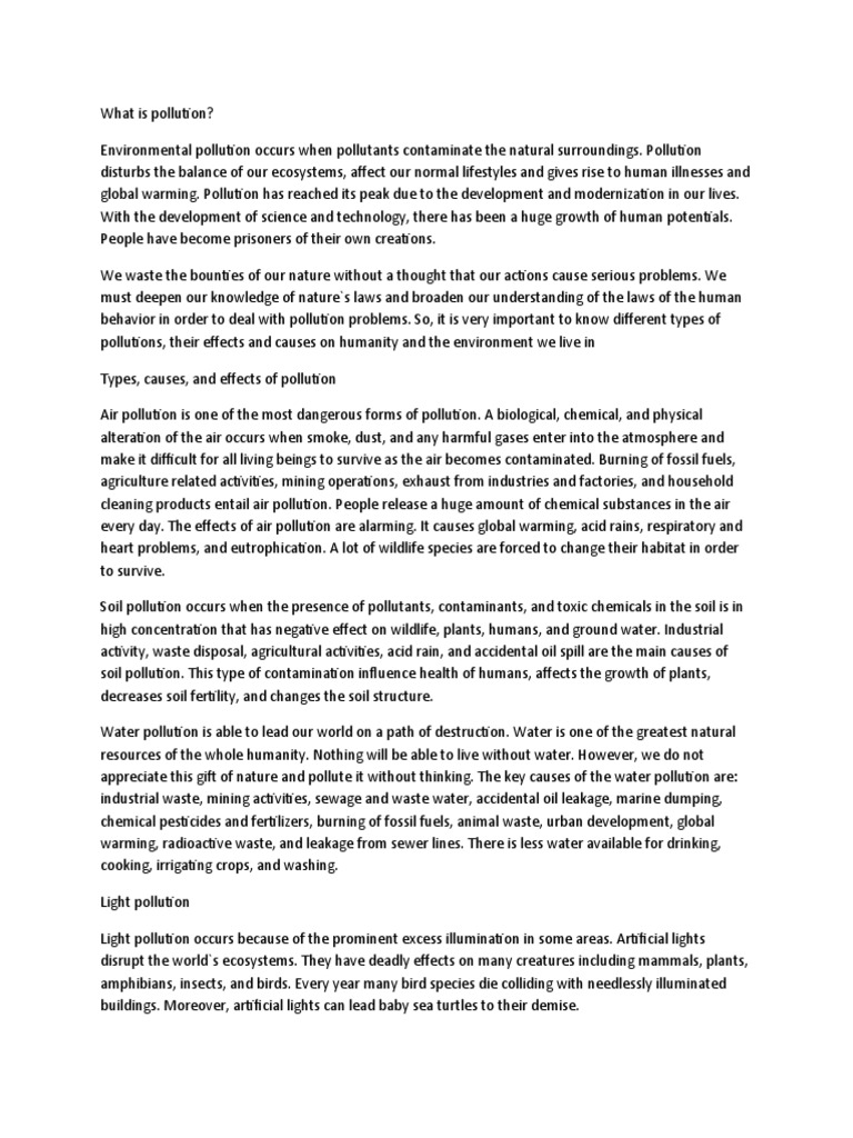behavior in order to deal with pollution problems. So, it is very important to know different types of