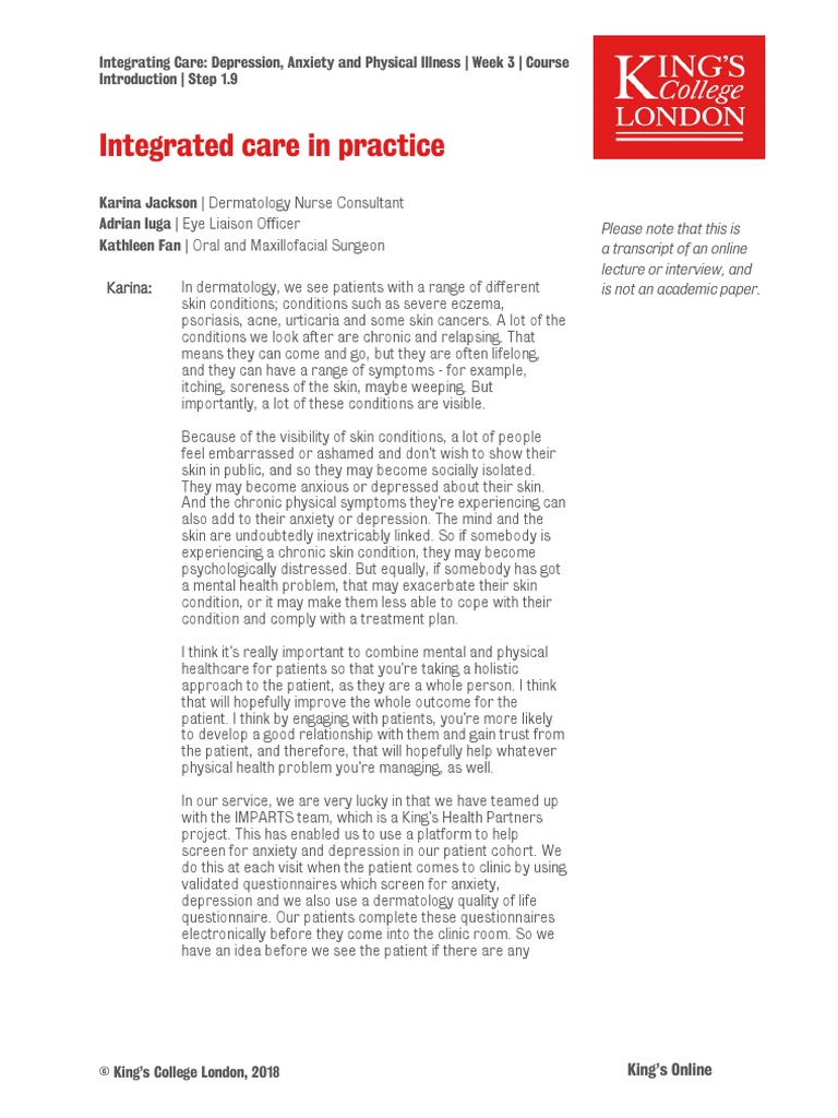 Integrating Care: Depression, Anxiety and Physical Illness | Week 3 | Course