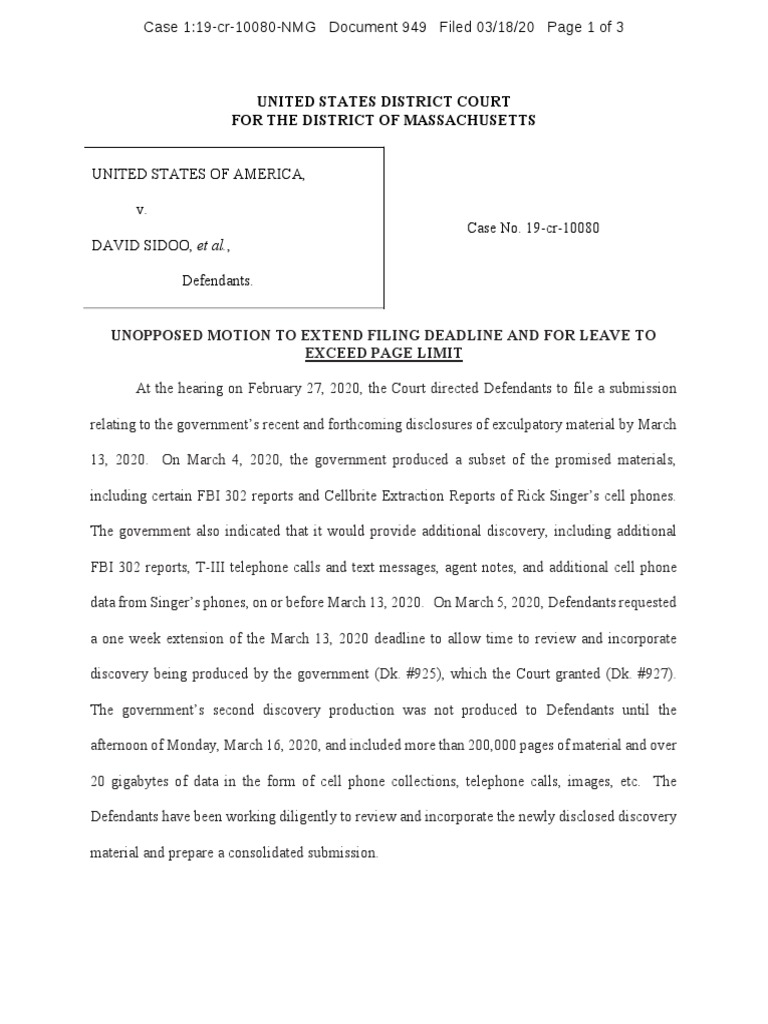 13, 2020. On March 4, 2020, the government produced a subset of the promised materials,