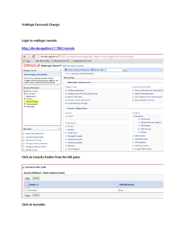 Please change new weblogic password to Oracle System User if it is existing under myrealm-