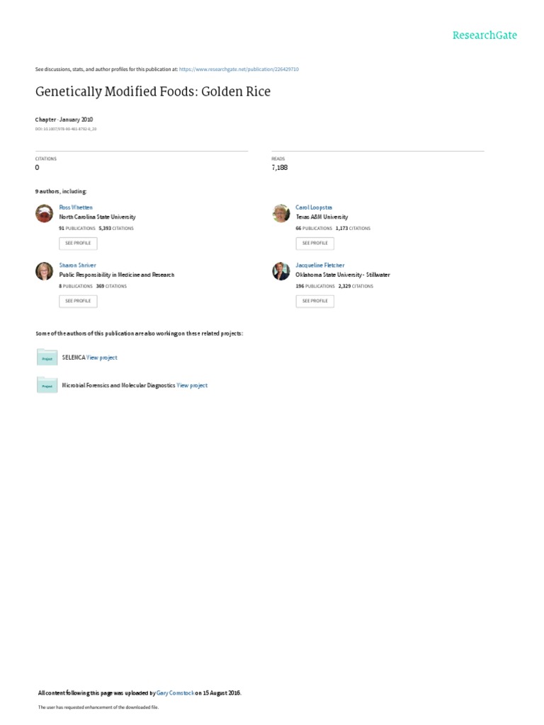 All content following this page was uploaded by Gary Comstock on 15 August 2016.