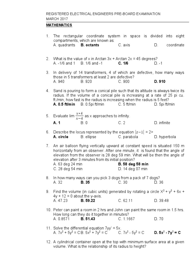 REGISTERED ELECTRICAL ENGINEERS PRE-BOARD EXAMINATION